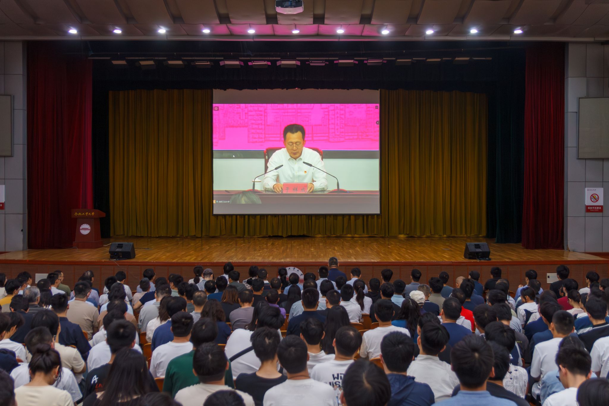 校党委书记于祥成发表动员讲话,全体党员认真聆听。于祥成书记强调,开展党员培训意义重大,全校师生党员要提高政治站位,通过集中培训进一步锤炼坚强党性,砥砺过硬作风,筑牢对党忠诚的政治品格;要培铸优良学风,以端正态度对待教育培训,以严明纪律保障学习质效,以昂扬的精神状态切实推动教育培训见行见效;要注重培训实效,以学用贯通提升发展本领,立足岗位担当作为,切实把培训成果转化为推动学校高质量发展的强大动力,为加快建设特色鲜明的世界一流大学贡献智慧和力量,以优异成绩向建校80周年献礼。