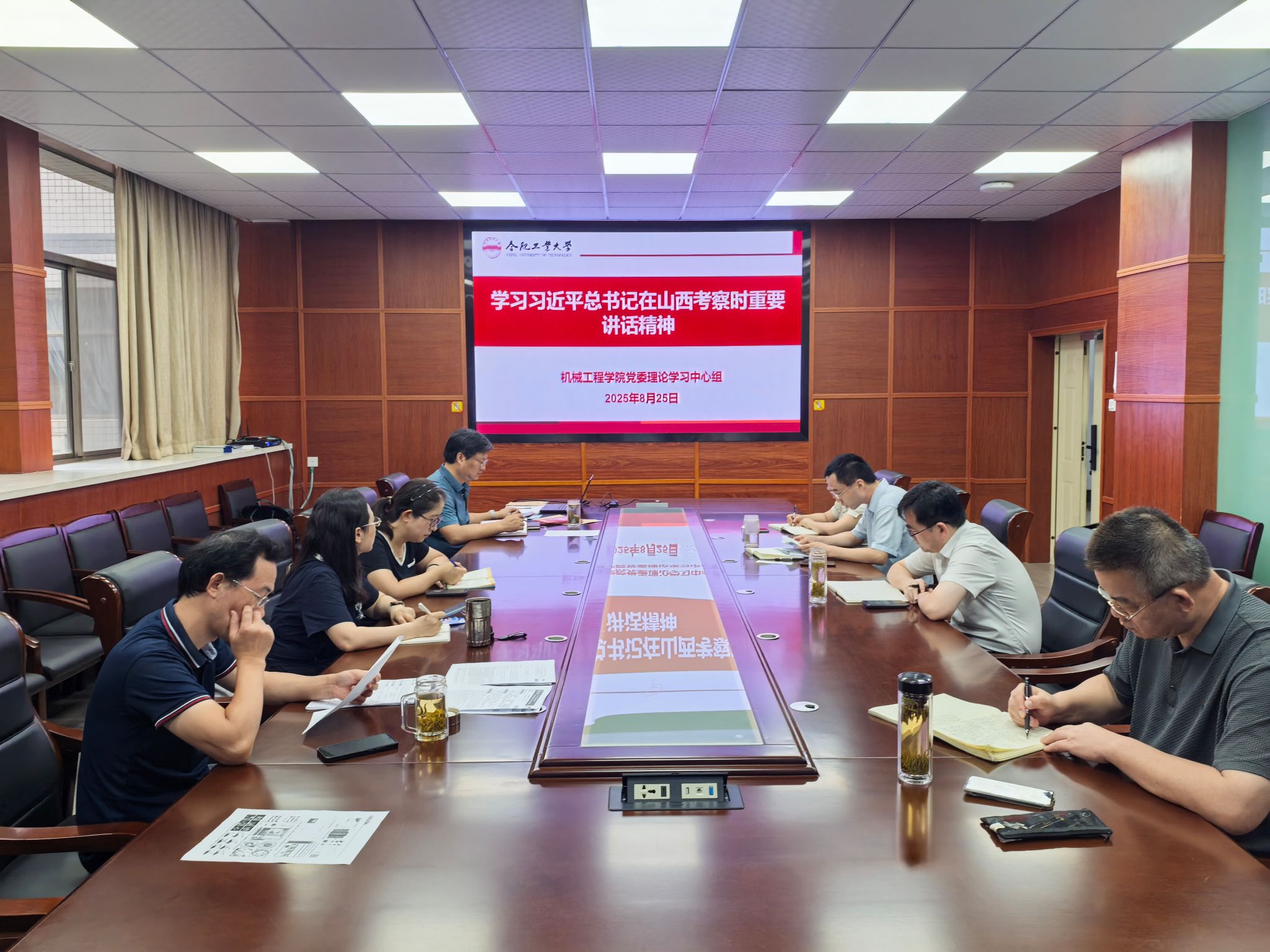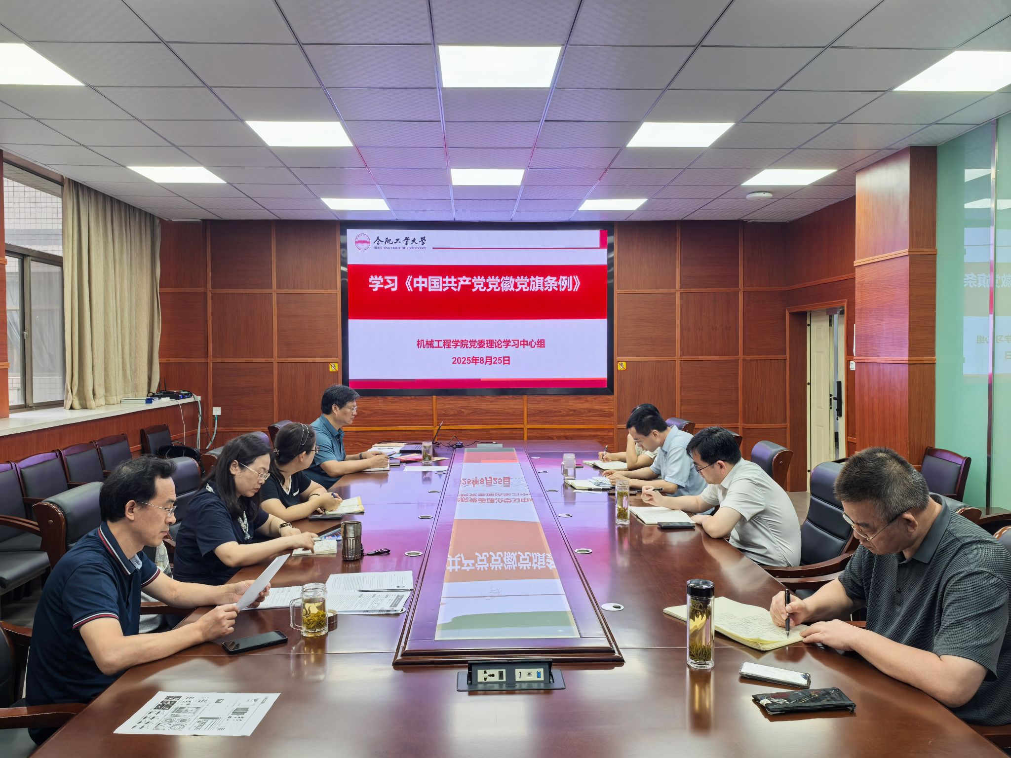祖磊领学了习近平总书记在山西考察时重要讲话精神、7月30日中共中央政治局会议精神;蔡伟伟领学了《中国共产党党徽党旗条例》和全面规范党徽党旗制作、使用、管理各项工作——中央组织部负责人就印发《中国共产党党徽党旗条例》答记者问;马培勇领学了《全力开辟教育强国建设广阔前景》。会上,集体学习了《团结奋斗是中国人民创造历史伟业的必由之路》《坚定不移推进高水平对外开放》。