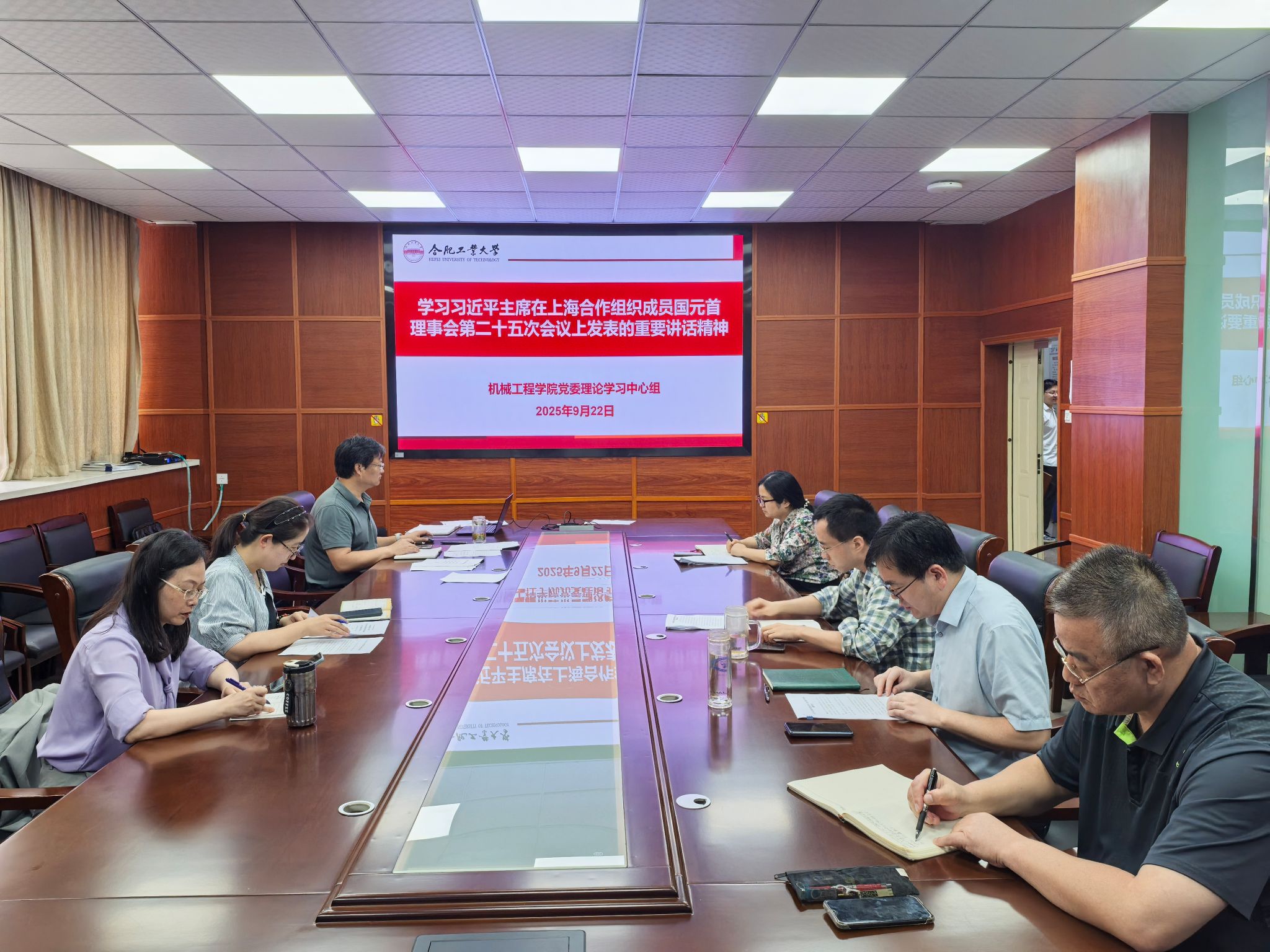 马培勇领学了习近平主席在“上海合作组织+”会议上发表的重要讲话精神、习近平主席在上海合作组织成员国元首理事会第二十五次会议上发表的重要讲话精神、习近平主席出席金砖国家领导人线上峰会时发表的重要讲话精神;赵萍领学了习近平总书记给全国特岗教师代表的回信精神、习近平主席向2025世界智能产业博览会致贺信精神;陈华领学了中办转发《中央宣传部、中央组织部关于认真组织学习〈习近平谈治国理政〉第五卷的通知》精神。