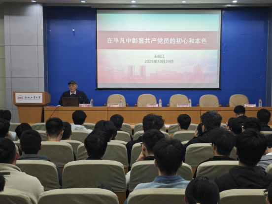 优秀共产党员坚守科研教学一线的典型事迹为切入点,结合自身经历,从“坚定理想信念,经得起时间考验”、“不计个人得失,经得起利益考验”、“不怕艰难困苦,经得起困难考验”、“不惧潜在危险,经得起风险考验”四个方面,深情讲述老一辈工大人扎根教育、践行工业报国志向的奋斗历程,号召全体学员传承工业报国精神,以青春之笔书写时代答卷。