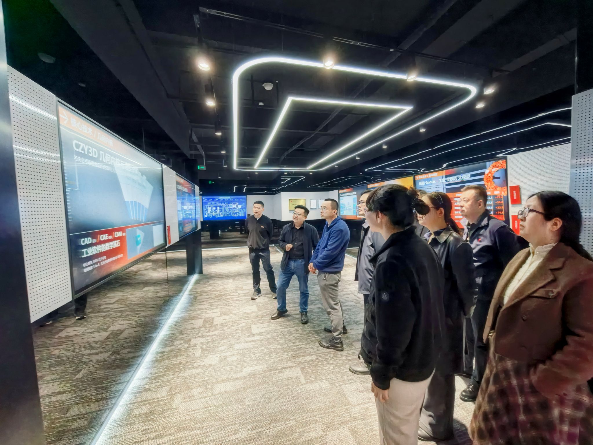 杰出校友纪尧华的陪同下,调研组一行参观了公司数字科技展厅,深入了解企业在虚拟现实、数字孪生及工业智能体等领域的核心技术成果与应用场景。