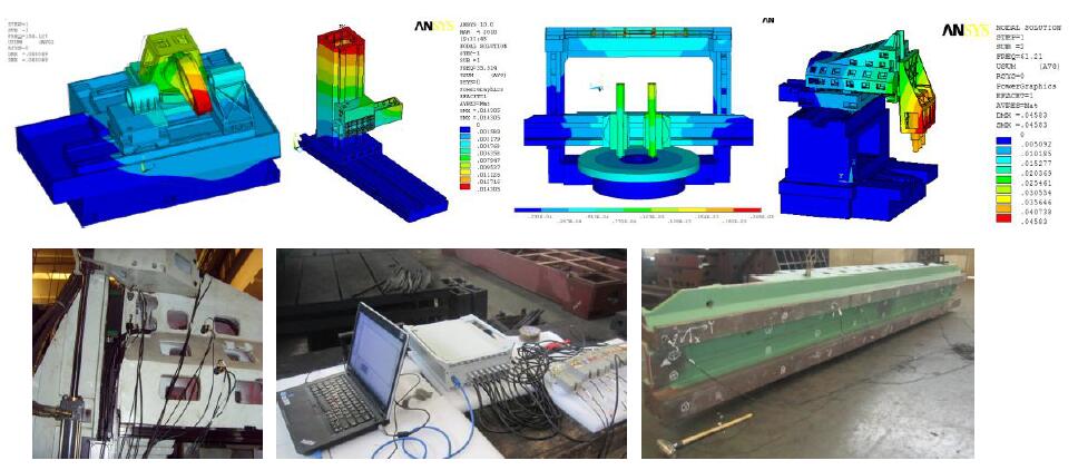 采用有限元分析方法分析机床静动态特性,进行机床结构优化,减轻机床重量,通过模态分析试验验证机床动态特性,提高了数控机床的结构强度与使用寿命,降低了设计制造成本;该技术已经成功应用于各类数控机床的优化设计中。