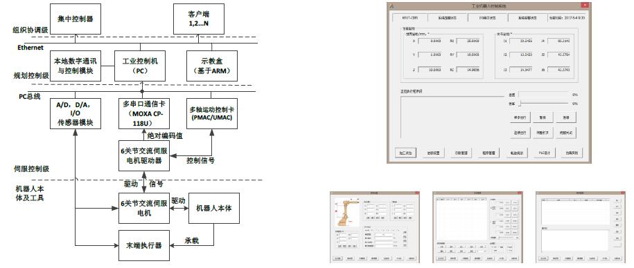 针对工业应用中常用多轴多关节工业机器人运动控制需求,研究工业机器人运动学及动力学特性规律,开发多CPU 全数字高性能“IPC+I/O 卡+运动控制卡”的运动控制硬件平台;以开放式软件平台、数字化通讯接口协议的模块化软件结构,实现可灵活组网的开放式多轴联动高端机器人控制系统。