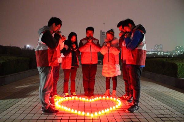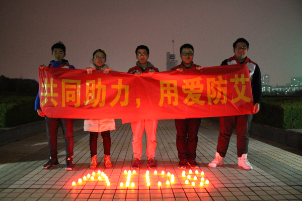 紫笛社红十字部于翡翠湖校区俪人湖畔开展为“艾”祈福活动。在祈福过程中,志愿者们将蜡烛摆成“HOPE”、“AIDS”和心形等形状,为艾滋病人祈求爱与希望。