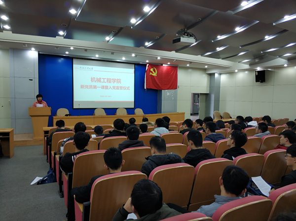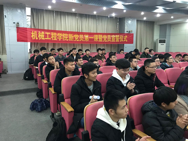 新党员第一课暨党员宣誓活动在格物楼214举行,学院新发展的学生党员57人参加了活动,院党委相关负责同志出席了此次活动。