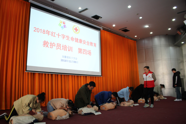 邀请了安徽省红十字会的老师于11月8日、9日在翡翠湖校区开展了“不放弃一切希望”为主题的应急救护培训,两百余名学生参与其中。
