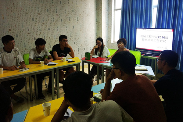 2016级搬家动员工作会议在翡翠湖校区综合楼215举行,学院郑召丽老师、16级辅导员及13名班长参加了会议。