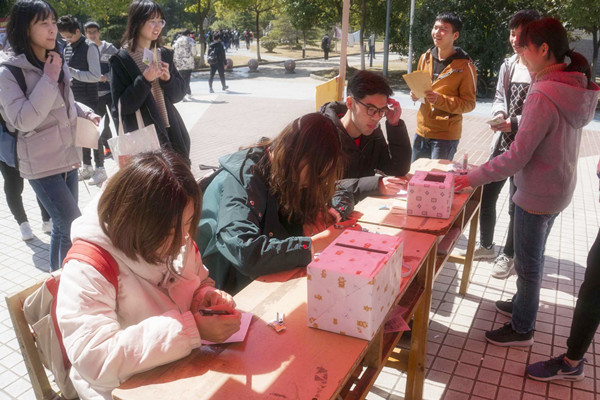 3月6日,水果派解说 “慢递邮局”活动在翡翠湖校区一食堂广场进行,吸引很多同学积极参与。