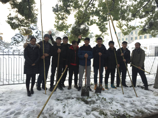 机电工程学院机械制造及其自动化专业的部分交换生在合肥工大校园开展义务除雪活动。