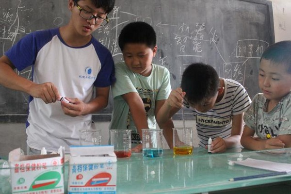 在为期一周的实践活动中,“逐梦”团结合自身专业特点和学校留守儿童的实际情况,精心组织安排了一系列有趣而又生动的课程:由心理安全,生理安全,防拐防骗,生活中的潜在危险等四个方面组成的安全教育普及课程,有效地提高孩子们的安全意识并使他们掌握了一定的安全技能;同时,通过开展科技、实验和模型组装等课程,激发孩子们的好奇心,孩子们通过亲手组装和尝试,掌握了最基本的科学小知识,提升孩子们的动手实践能力;开展以“扬帆魅力七月,书写红色青春”为主题的书法课程,使孩子们对硬笔书法产生了浓厚的兴趣,能够深入学习和把握中华优秀传统文化的精髓;团队成员还和孩子们交流谈心,关心他们的学习和生活情况,疏导他们思念亲人的情感,力所能及地为他们辅导功课。