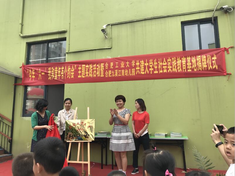 5月24日,水果派解说 与合肥九溪江南幼儿园联合举办“今年‘六一’,我和童年有个约会”主题社会实践活动,并为该社会实践教育基地进行揭牌。该院党委副书记郑召丽、团委相关团学骨干、紫笛志愿者、幼儿园全体师生及部分学生家长共计300余人参加了此次活动。